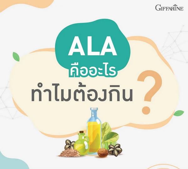ครั้งแรกของการรวมโอเมก้า 3 จากพืชมากถึง 5 ชนิด ไว้ในแคปซูลเดียว ALA กิฟฟารีน คำตอบของการดูแลสุขภาพที่ยั่งยืน ALA สามารถเปลี่ยนเป็น EPA และ DHA ได้ เมื่อร่างกายต้องการ และได้รับพฤกษเคมีที่หลากหลาย เช่น Oxylipins, Phytosterol, Tocopherols และ Polyphenols ที่ไม่พบในน้ำมันปลาหรือน้ำมันสาหร่าย ลดโอกาสเสี่ยงการได้รับสารปนเปื้อน และโลหะหนักจากทะเล ไม่มีกลิ่นคาว ไม่มีข้อจำกัดในการรับประทาน