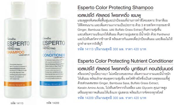 กิฟฟารีน เอสแปร์โต้ คัลเลอร์ โพรเทคติ้ง ผลิตภัณฑ์ดูแลบำรุงเส้นผมระดับพรีเมี่ยม เอสแปร์โต้ นำเข้าจากประเทศสหรัฐอเมริกา คิดค้นและพัฒนาเพื่อผมทำสีโดยเฉพาะ จากประสบการณ์ของ Dr.Ronald M. DiSalvo ผู้เชียวชาญทางด้านเคมี และนักวิทยาศาสตร์ที่มีชื่อเสียงระดับโลก