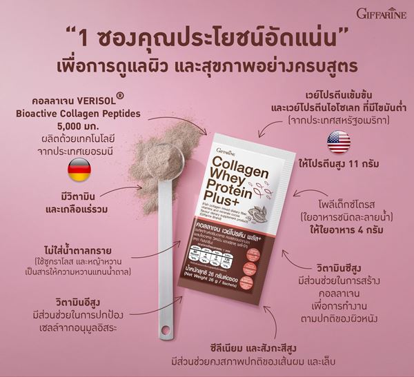 กิฟฟารีน คอลลาเจน เวย์โปรตีน พลัส+ นวัตกรรมใหม่ คอลลาเจนระดับพรีเมี่ยม Bioactive Collagen Peptides ผิวสวย โปรตีนครบ จบในซอง ดูแลผิวได้ในแบบที่คุณต้องการ