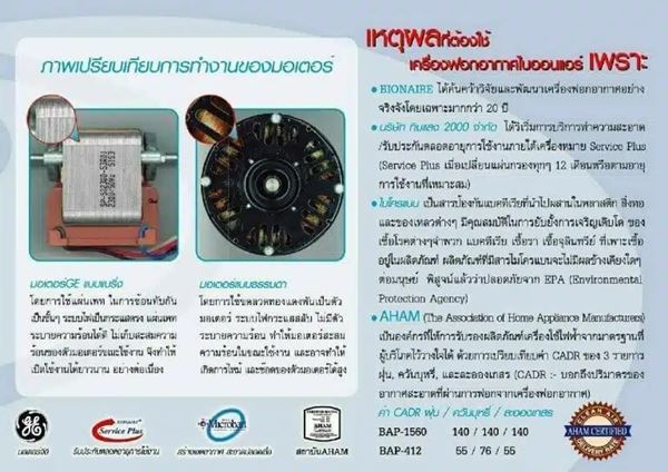 - Bionaire ได้ค้นคว้าวิจัยและพัฒนาเครื่องฟอกอากาศอย่างจริงจังโดยเฉพาะมากกว่า 20 ปี