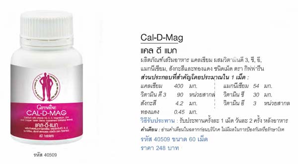 ผลิตภัณฑ์เสริมอาหารแคลเซียม ผสมแมกนีเซียม วิตามิน ซี, สังกะสี,แมงกานีส, ทองแดง, วิตามิน อี และวิตามิน ดี3 ชนิดเม็ด ตรากิฟฟารีน