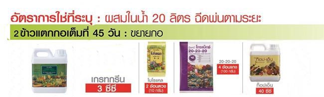 ระยะถ้าต้องการเพิ่มความเขียวด้วย แนะนำให้เติมเทอร์โบไทโอแม็ก 1 ช้อนแกง (20 ซีซี)